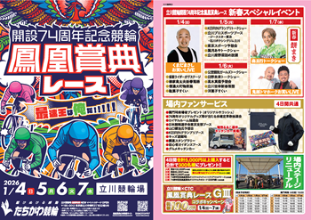 2026年もグレードレースは立川記念からスタート。1月4日から激戦の幕が上がる。S班は吉田拓矢、眞杉匠、寺崎浩平、嘉永泰斗の4名が参戦予定。他にもトップスターが名を連ねて年初めのスタートダッシュを狙う。